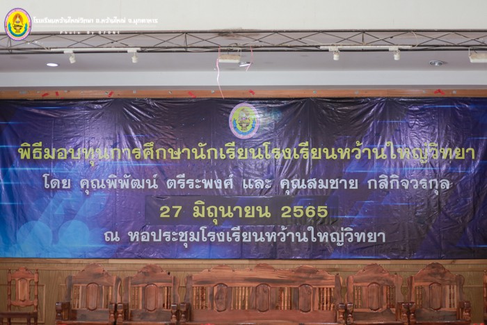 พิธีมอบทุนการศึกษานักเรียนโรงเรียนหว้านใหญ่วิทยา โดย คุณพิพัฒน์ ตรีระพงษ์ และ คุณสมชาย กสิกิจวรกุล พร้อมด้วยคณะ