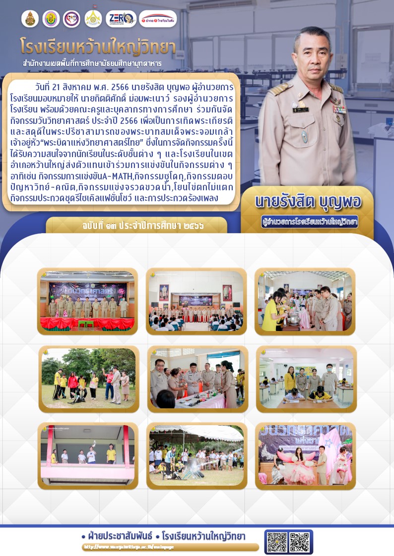 กิจกรรมวันวิทยาศาสตร์ ประจำปี 2566 เพื่อเป็นการเทิดพระเกียรติและสดุดี ในพระปรีชาสามารถของพระบาทสมเด็จพระจอมเกล้าเจ้าอยู่หัว“พระบิดาแห่งวิทยาศาสตร์ไทย”