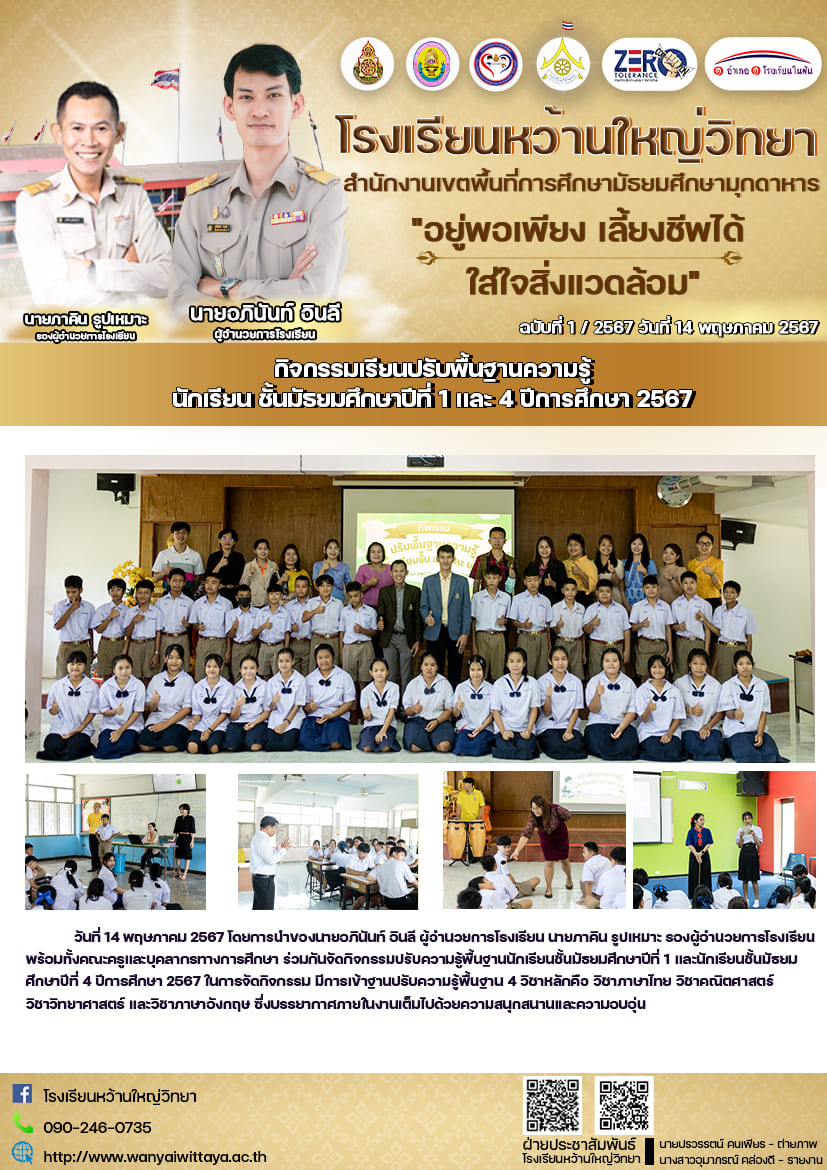 กิจกรรมปรับพื้นฐานความรู้นักเรียนชั้นมัธยมศึกษาปีที่ 1 และ 4 ปีการศึกษา 2567
