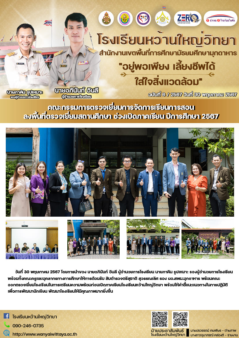 คณะกรรมการตรวจเยี่ยมการจัดการเรียนการสอน ลงพื้นที่ตรวจเยี่ยมสถานศึกษา ช่วงเปิดภาคเรียน ปีการศึกษา 2567