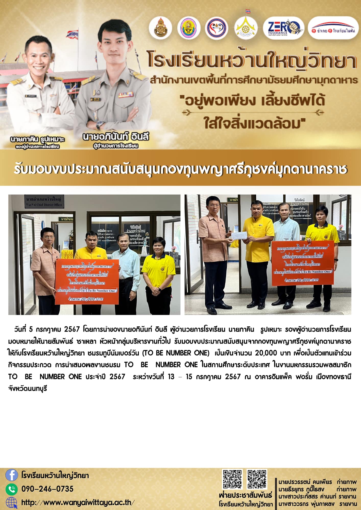 รับมอบงบประมาณสนับสนุนกองทุนพญาศรีกุชงค์มุกดานาคราช