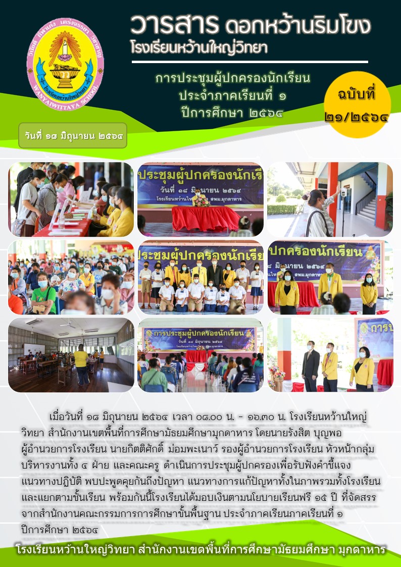 วารสารดอกหว้านริมโขง :การประชุมผู้ปกครองนักเรียน ประจำภาคเรียนที่ ๑ ปีการศึกษา ๒๕๖๔